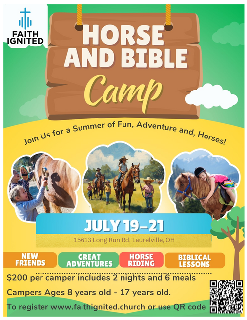 Throughout the week, campers will take part in daily Bible lessons and hands on horse activities, learning skills such as grooming, groundwork, and riding.